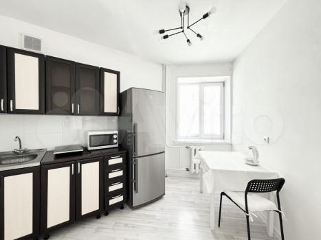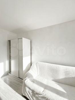 В квартире выполнен косметический ремонт. Из мебели имеются шкафы, стол и диван. В наличии холодильник и стиральная машина.