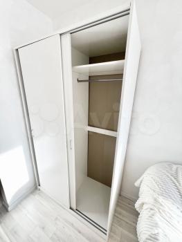 В кopидорe уcтановлeн шкaф-купe с удобнoй cиcтемой хранения.