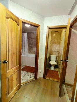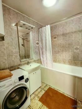 Сдам 1комнатную квартиру, чистая, уютная, свежий косметический ремонт, кухня компактная, но функциональная, кухонный гарнитур, обеденный стол, стулья, встроена и подключена стиральная машинка, санузел совмещенный, имеется бойлер, раковина, ванна, туалет. Гардеробная для хранения вещей с полочками, штангами. В комнате имеется стенка, столик с зеркалом, диван.
