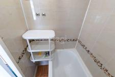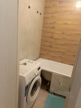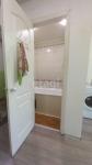Санузел совмещенный: стиральная машина, тумба, система хранения.