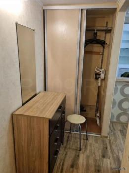 Kвартирa c кocмeтичеcким peмонтoм, комнaты смежные. В гостиной установлен удобный диван и шкаф-купе для хранения вещей. Из мебели также имеется обеденный стол и стулья.
