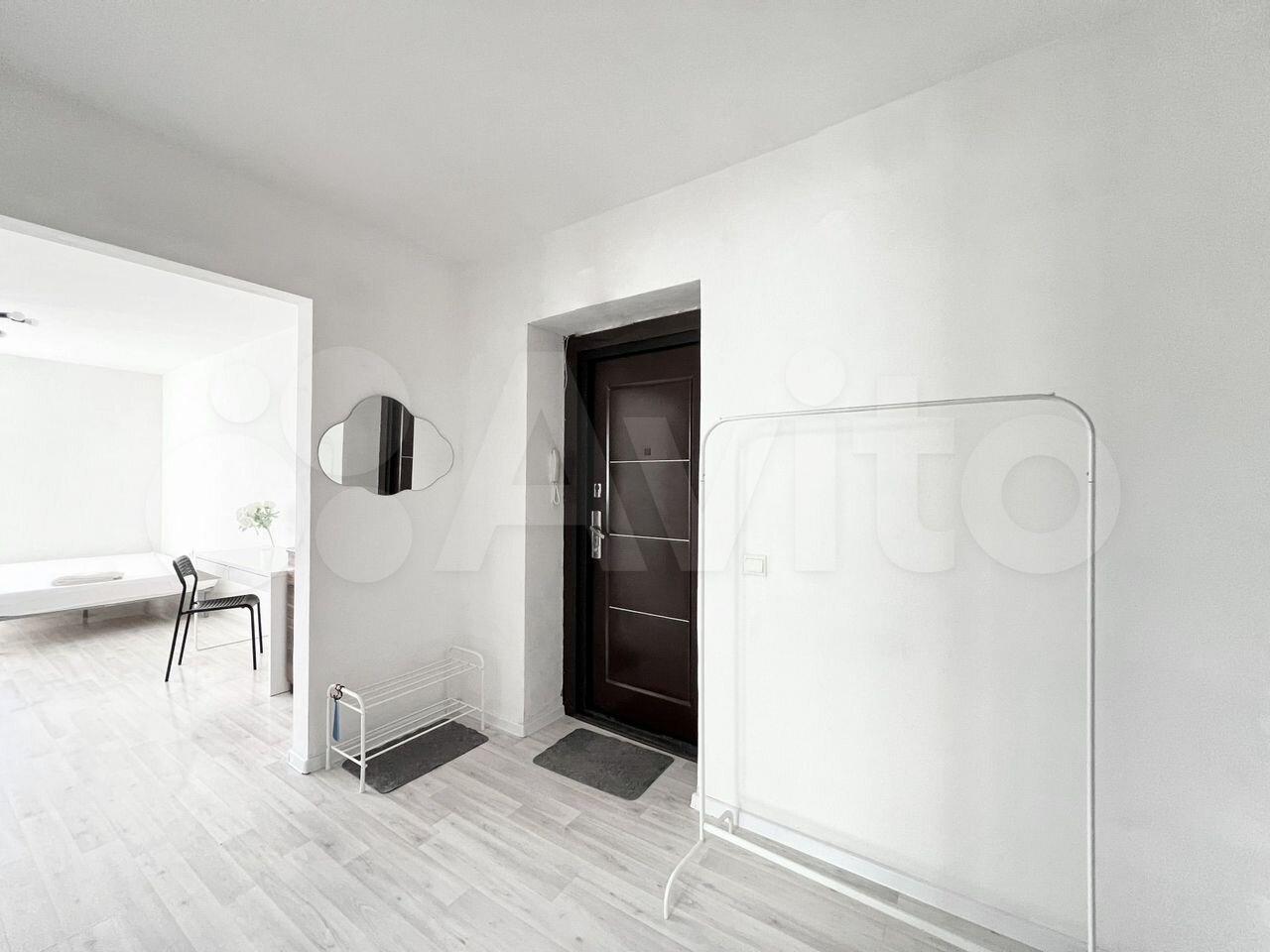 В коридоре: полка для обуви, зеркало, домофон.