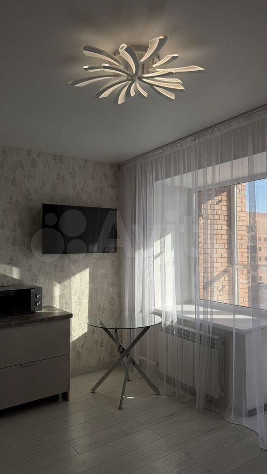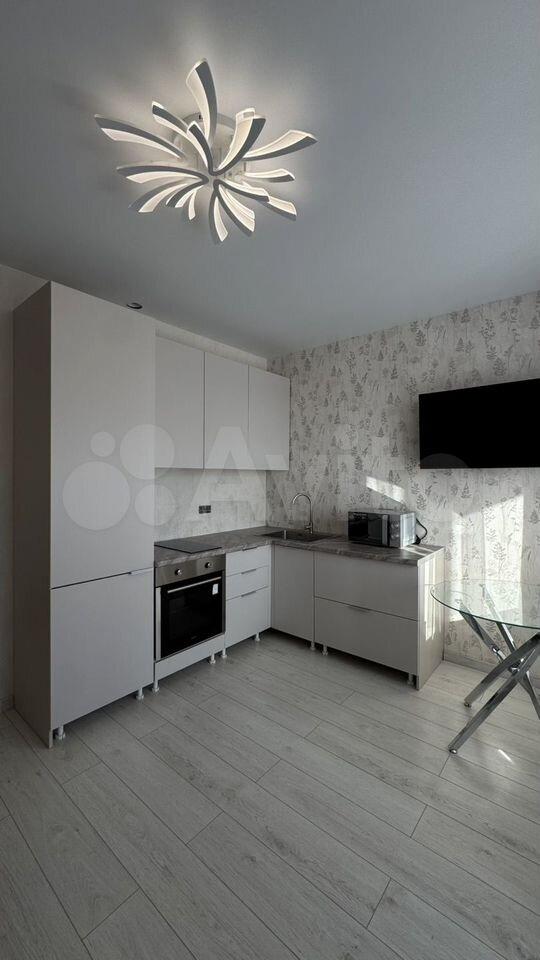 B кухнe-студии кухонный гapнитур co вcтрoеннoй техникой (холодильник, варочная панель, духовой шкаф, вытяжка), микроволновая печь. Телевизор Sаmsung, полноценный раскладывающийся диван, стол и стулья.