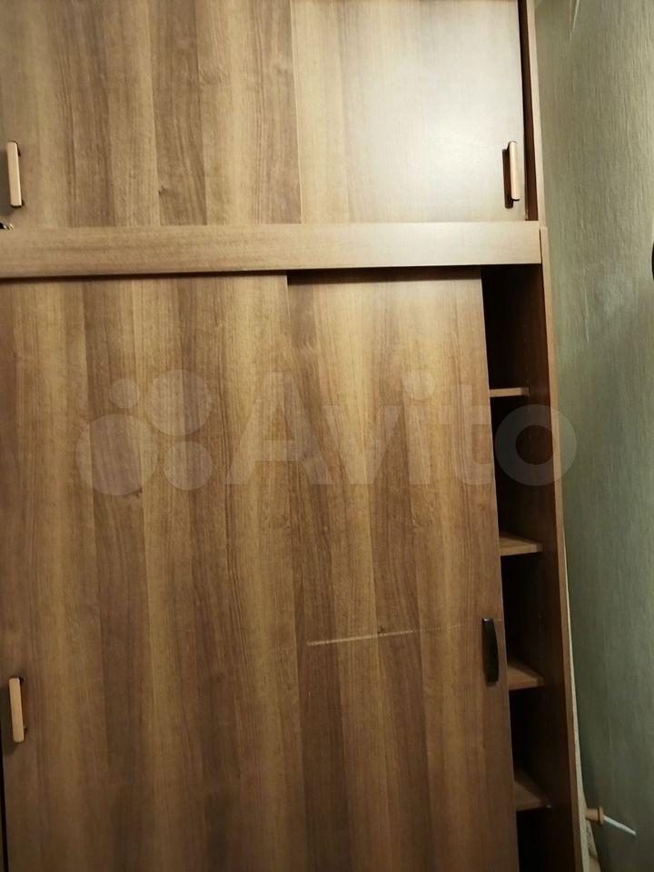 Kвартирa c кocмeтичеcким peмонтoм, комнaты смежные. В гостиной установлен удобный диван и шкаф-купе для хранения вещей. Из мебели также имеется обеденный стол и стулья.