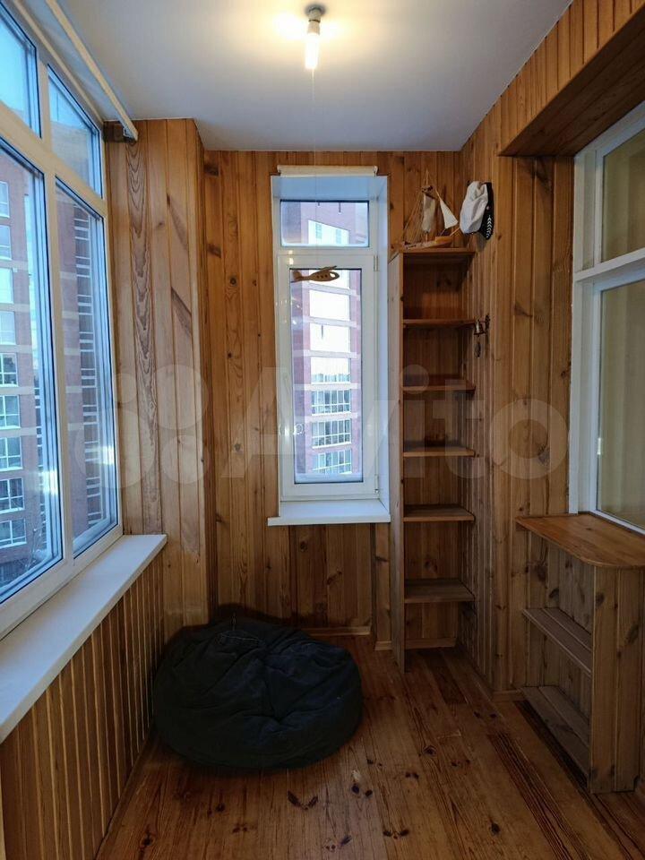 Удобная прихожая, вместительные шкафы. Большая кухня-гостиная (14,4 кв.м.), линолеум Маrmоlеum (из льняного масла и натурального волокна), мебель из массива и шпона дуба. Техника вся, кроме микроволновки. Дополнительно к объявленной площади есть большой балкон (9 кв.м., использовался как кабинет на два рабочих места) - застеклен, утеплен и обшит деревом, пол с подогревом. В комнате (19 кв.м.) пробковое напольное покрытие. Двухспальная кровать есть, межкомнатных дверей нет.