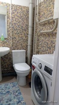 Кухня оснащена современной техникой: холодильник, микроволновая печь и стиральная машина. Ванная комната совмещенная, оформлена в светлых тонах, установлена ванна и бойлер.