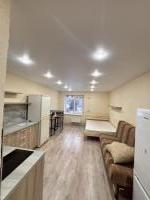 Я собственник! Сдам уютную новую студию в тихом районе около лесопарка. Во дворе магазин Доброцен. Большая парковка во дворе. В шаговой доступности остановка. В квартире сделан ремонт, постелен ламинат, установлены натяжные потолки, в ванной комнате выложена плитка, есть стиральная машина, телевизор, wifi. В квартире установлена новый кухонные гарнитур, диван, шкафы для хранения, холодильник, плитка, микроволновка, чайник.