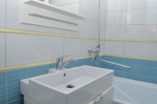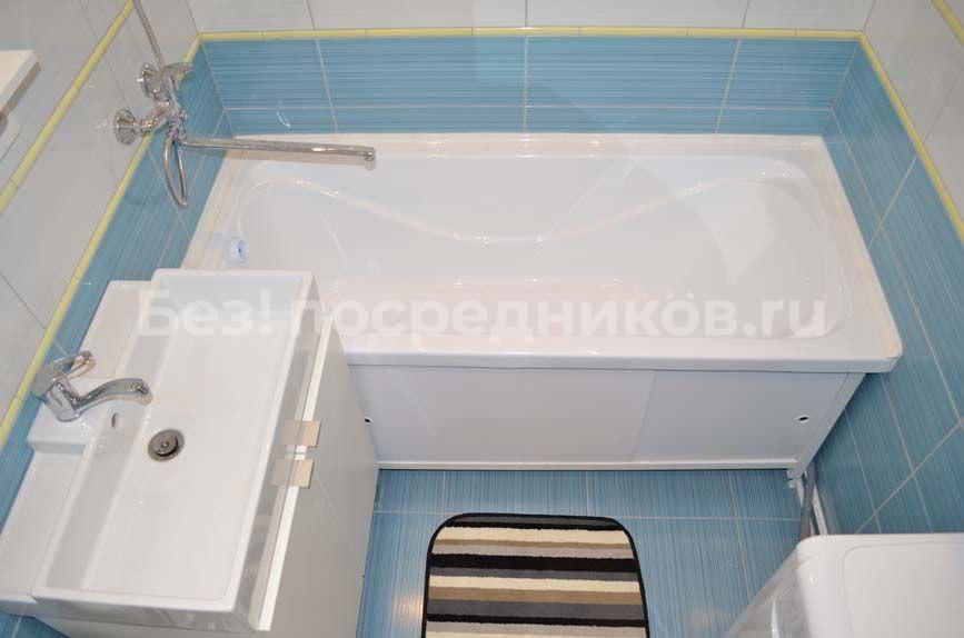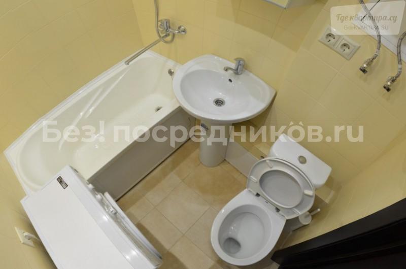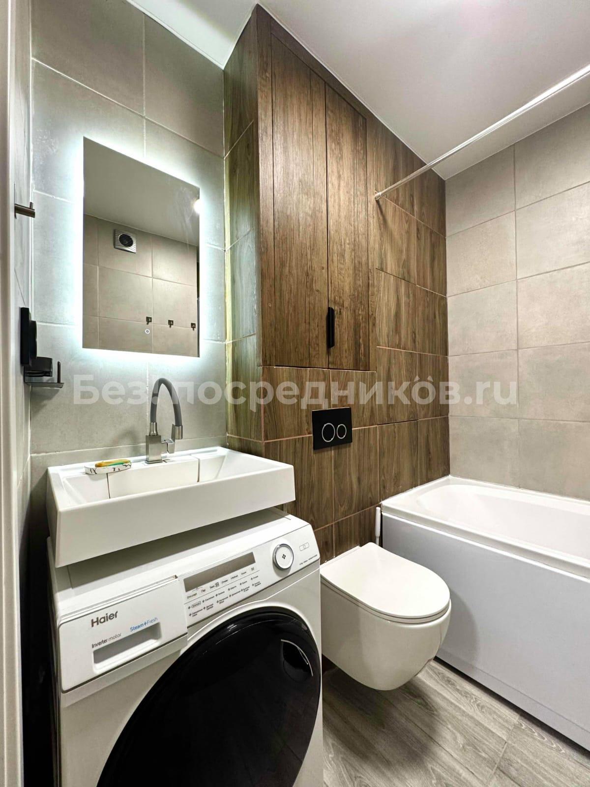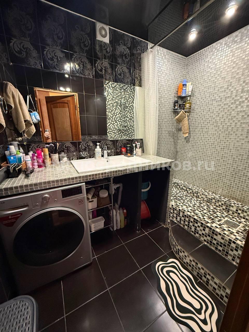 В ванной комнате установлен бойлер и теплый пол, стиральная машина с функцией сушилки.
