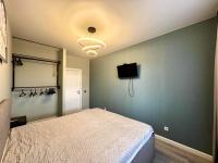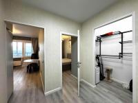 Спальная комната оборудована большим встроенным шкафом для хранения вещей.