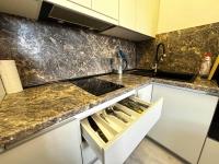 Удачное расположение квартиры на втором этаже позволяет рассмотреть ее семьям с малышами и пожилым людям. Просторная кухня-гостиная площадью 22 квадратных метра с шикарным кухонным гарнитуром - мечта любой хозяйки, а квадратура позволяет собирать большое количество друзей, на вечерние посиделки.