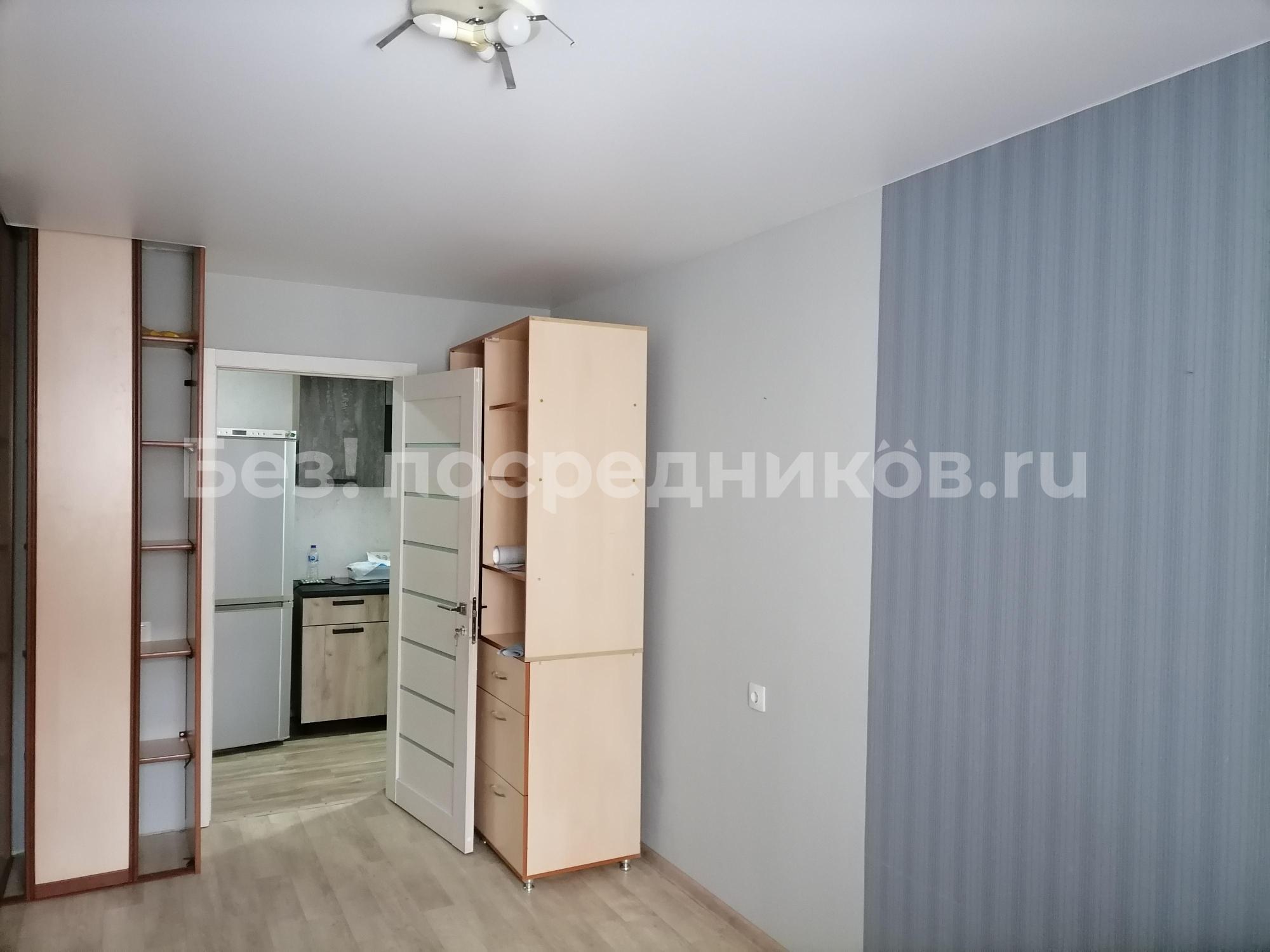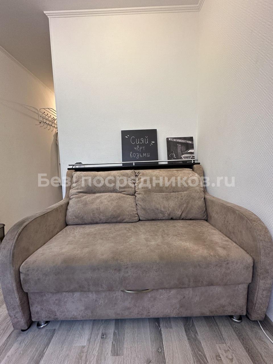 В квартире остается кухонный гарнитур, шкаф, диван.