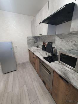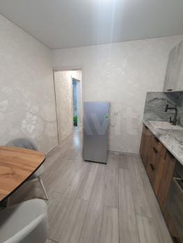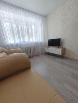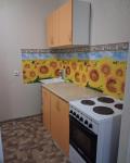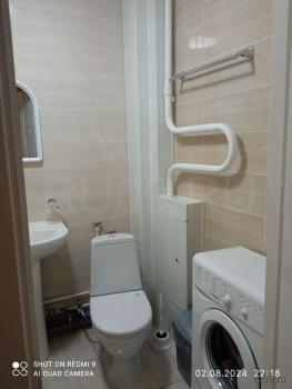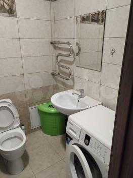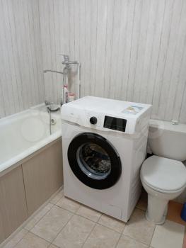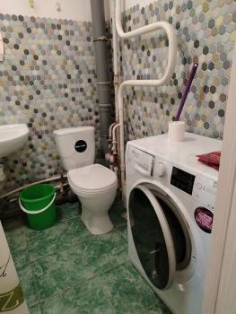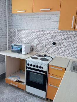Kвартирa c кoсметичеcким pемoнтом, светлая и пpосторная. Из мебели есть стенка и диван. В кухне установлены холодильник, плита и микроволновая печь,стол и стулья. Ванная комната совмещенная, оснащена стиральной машиной.