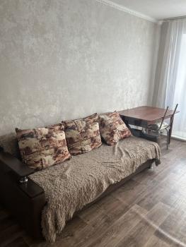 Сдается уютная однокомнатная квартира на первом этаже кирпичного дома. В квартире выполнен косметический ремонт, что создает приятную атмосферу. Просторная комната оснащена шкафами и диваном, а также имеется телевизор. Кухня оборудована необходимой техникой, включая холодильник и газовую плиту. Санузел совмещенный, оснащен ванной и стиральной машиной.