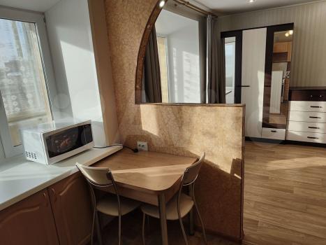 В квартире сделан евроремонт, поэтому все аккуратно и современно. Имеется вся необходимая мебель на кухне и в комнате, что делает проживание более комфортным.