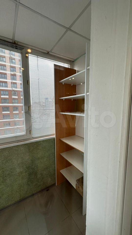 В жилая зона обеспечена двуспальным местом и шкафами. На лоджии также есть место для хранения одежды и бытовых вещей.