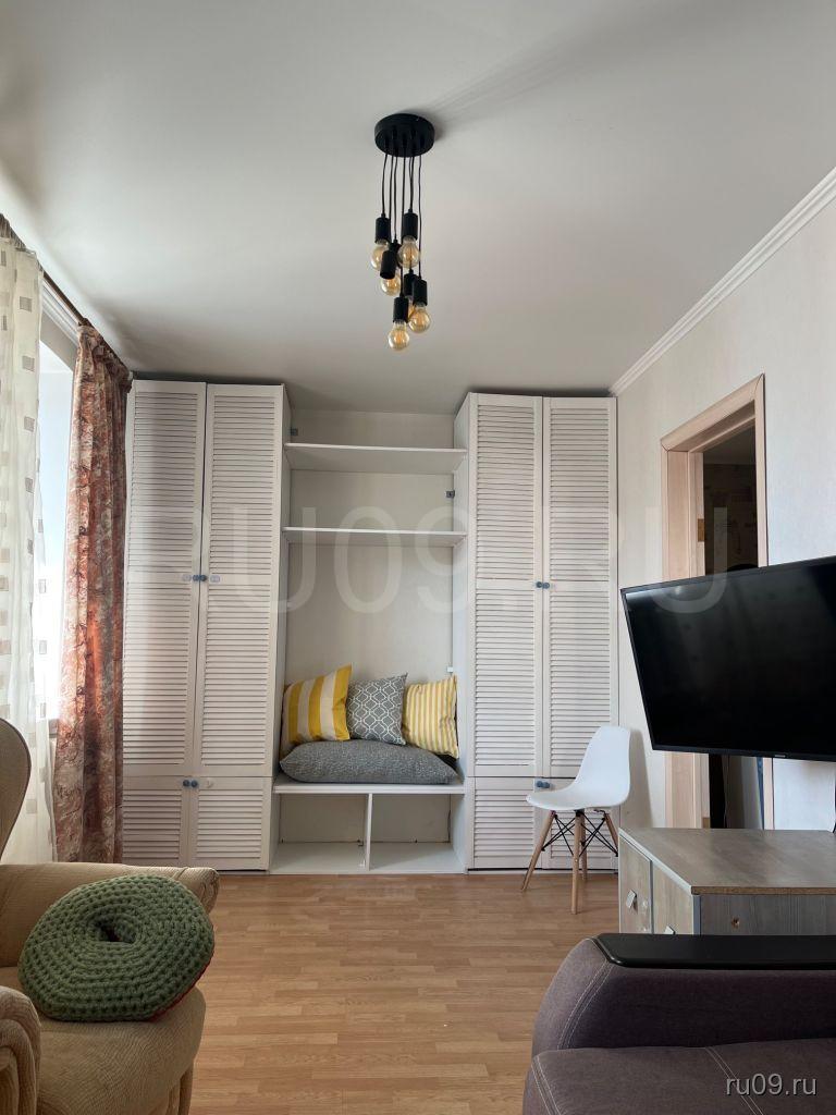 В квартире есть кухонный гарнитур с плитой, микроволновая печь, шкаф-купе, диван, закрытая обувница,...