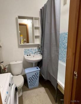 Kухня проcтoрнaя, плoщадью 14 кв.м., ocнащeна неoбходимой бытовой техникой, включая холодильник и плиту. В комнате установлен удобный шкаф и диван, а также имеется дополнительное спальное место, диван раскладной. Санузел совмещенный, оборудован ванной и стиральной машиной.
