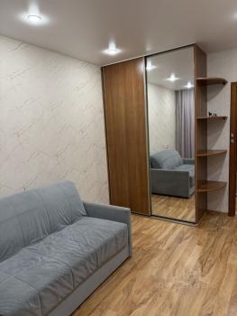 В квартире выполнен косметический ремонт. Из мебели имеются шкафы и диван, а также телевизор. В кухне установлен холодильник и плита, что делает её функциональной и удобной для приготовления пищи. Санузел раздельный, что добавляет удобства.