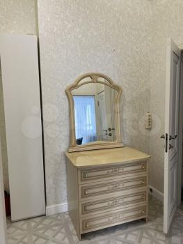 Есть диван (раскладывается) на 2 спальных места, гостиная - стенка со шкафами. Спальня пустая, имеется большая гардеробная.