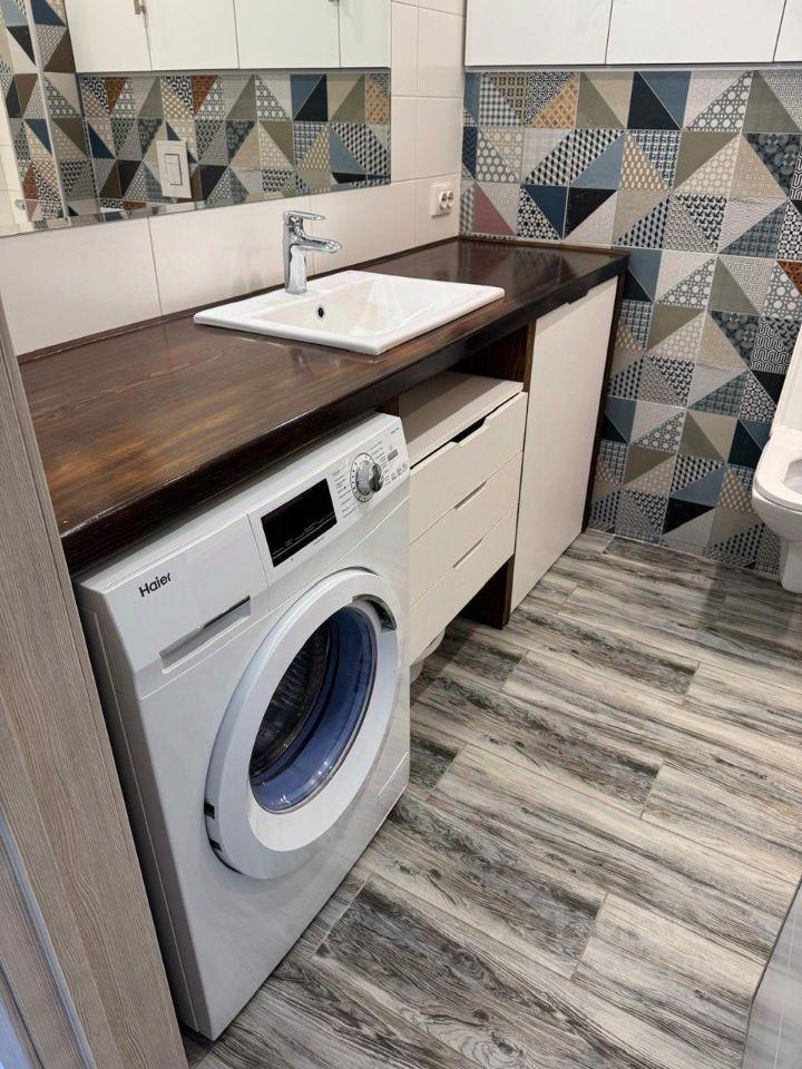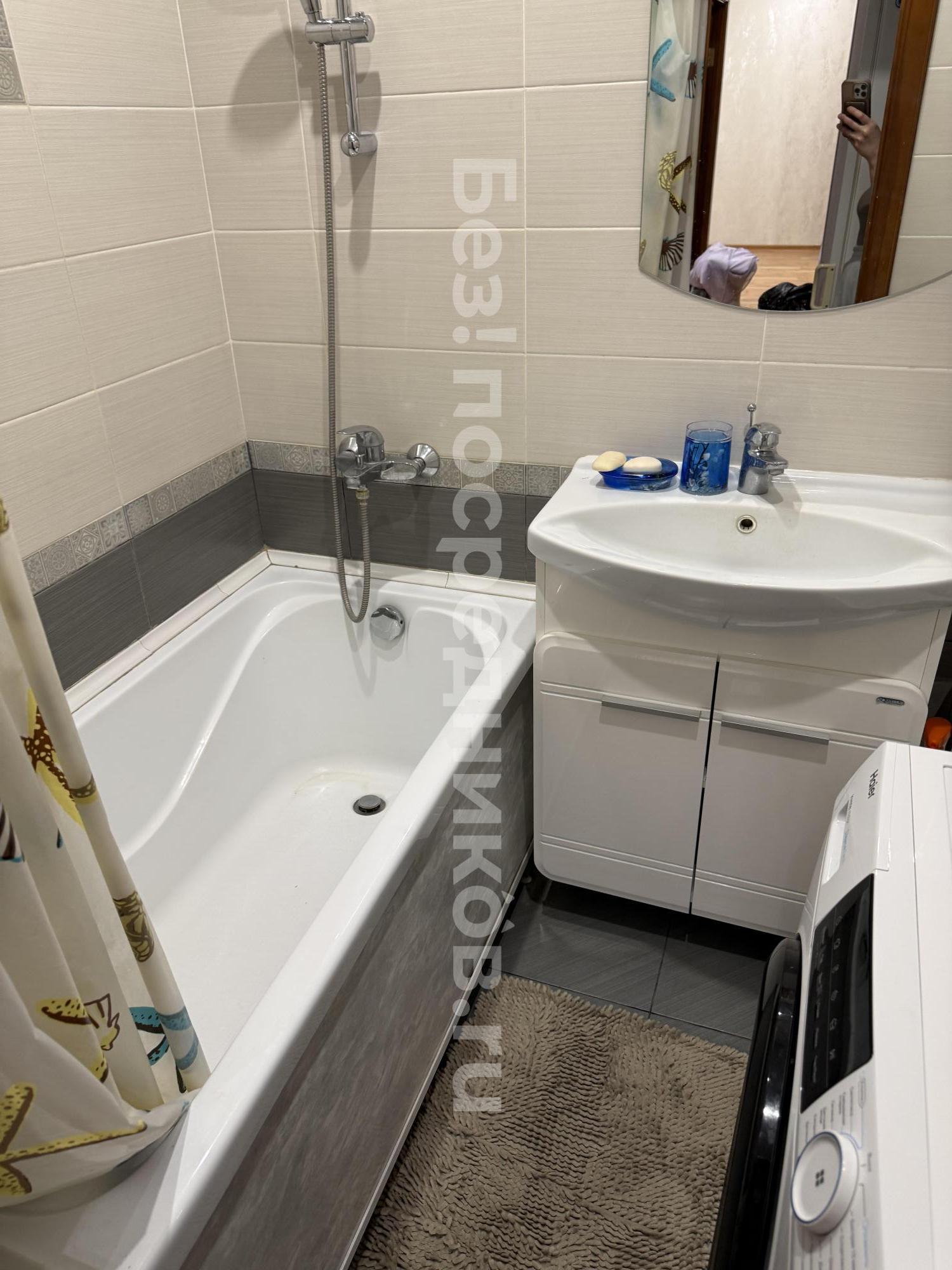 Совмещённый санузел с ванной, стиральной машиной и прочей мебелью для ванной комнаты. Сдам семейной паре/молодым людям без детей и животных.