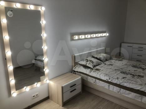 - в спальне - двуспальная кровать, две тумбочки, вместительный комод, визажное зеркало с подсветкой;