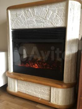 - в зале - диван, комод, электронный камин, два кресла и столик;