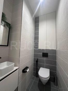 В квартире есть один совмещённый и один отдельный санузел, гардеробная, просторный балкон. Все комнаты обставлены необходимой мебелью. Установлена современная техника, в том числе два кондиционера, посудомоечная и стиральная машины, ТВ, роутер, большой холодильник No frost.