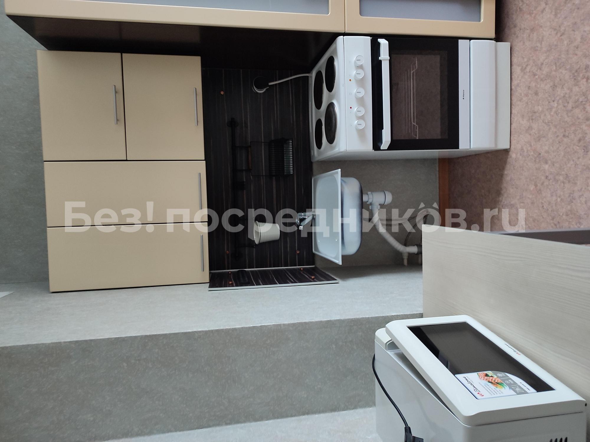 Квартира чистая, светлая, тёплая. Свежий ремонт: обои, линолеум, кафель в санузле. Новая мебель: кухонный гарнитур, шкаф-купе с зеркальными дверьми, компьютерный стол с надстройкой, навесная полка, комод, стол-книжка. Новая техника: стеклокерамическая плита, вытяжка. Новая светодиодная люстра с несколькими режимами работы. В квартире также есть раскладывающийся диван, два стула, вместительный холодильник и стиральная машина.