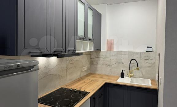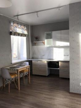 В квартире сделан качественный евроремонт. В комнате и на кухне есть вся необходимая мебель, а также современная техника: кондиционер, холодильник, телевизор и стиральная машина. Планировка продумана до мелочей — совмещенный санузел оснащён душевой кабиной. Окна выходят во двор, поэтому в квартире всегда тихо и спокойно.