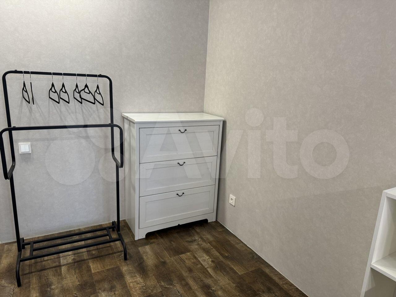 Для хранения вещей есть большой удобный комод Икеа. В коридоре оборудовано два больших шкафа: шкаф-купе с зеркалом в полный рост и распашной.