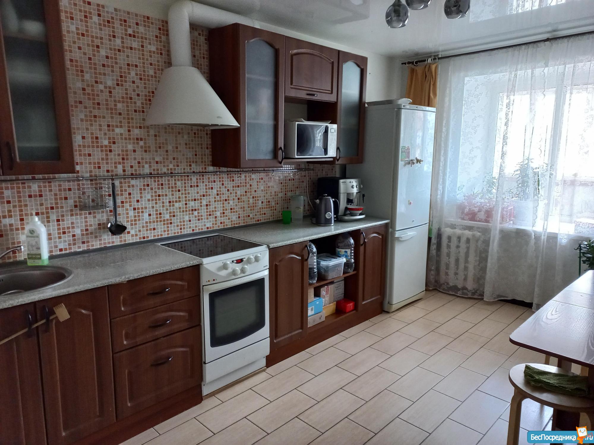 Есть холодильник, электроплита, микроволновка, стиральная машина, телевизор, кровать, кухонный гарн итур, стол, стулья, шкаф купе, пылесос, гладильная доска, утюг.