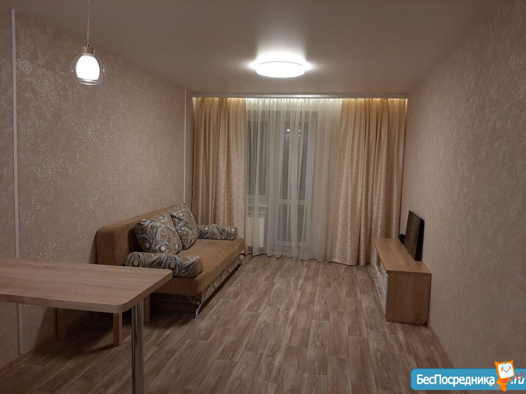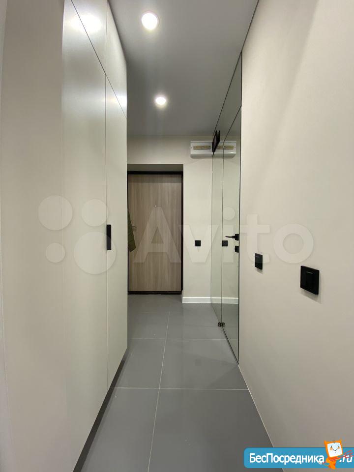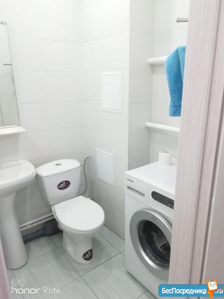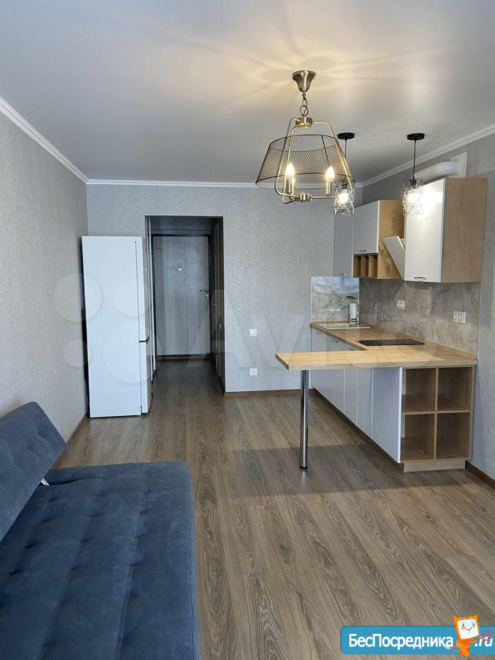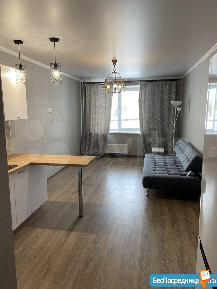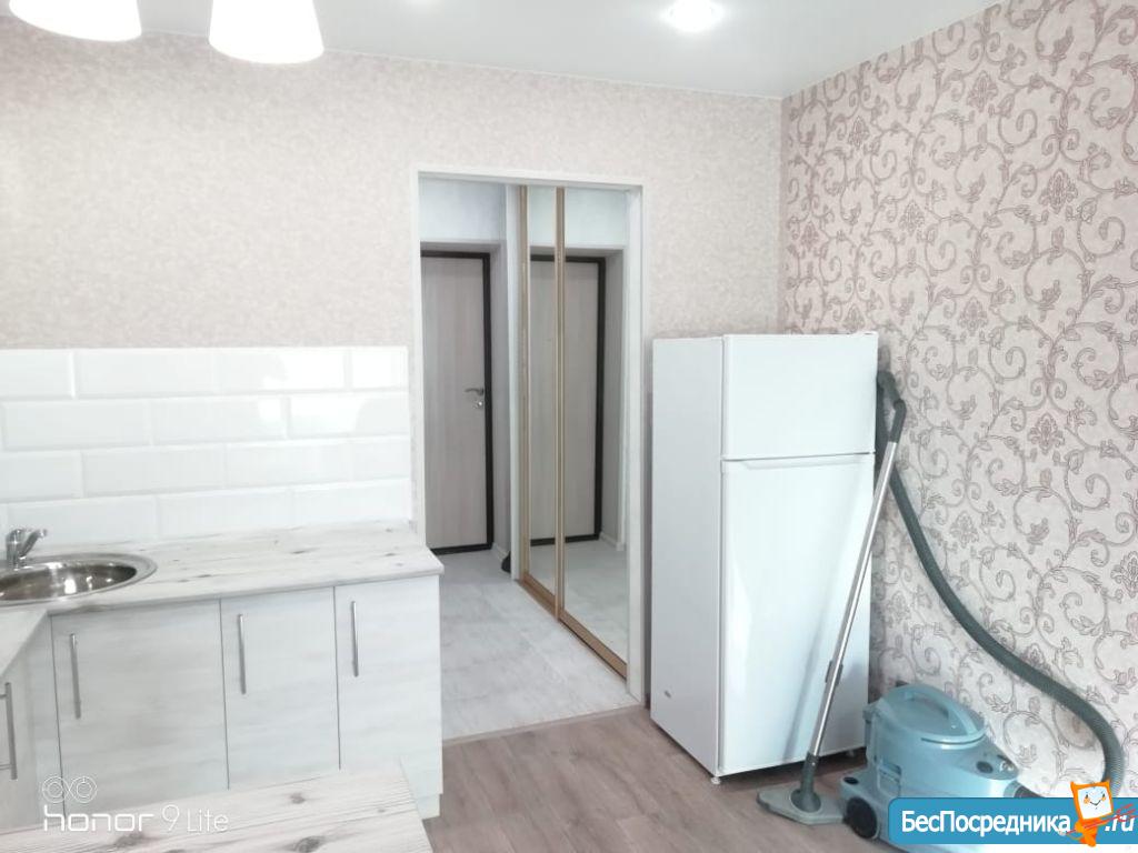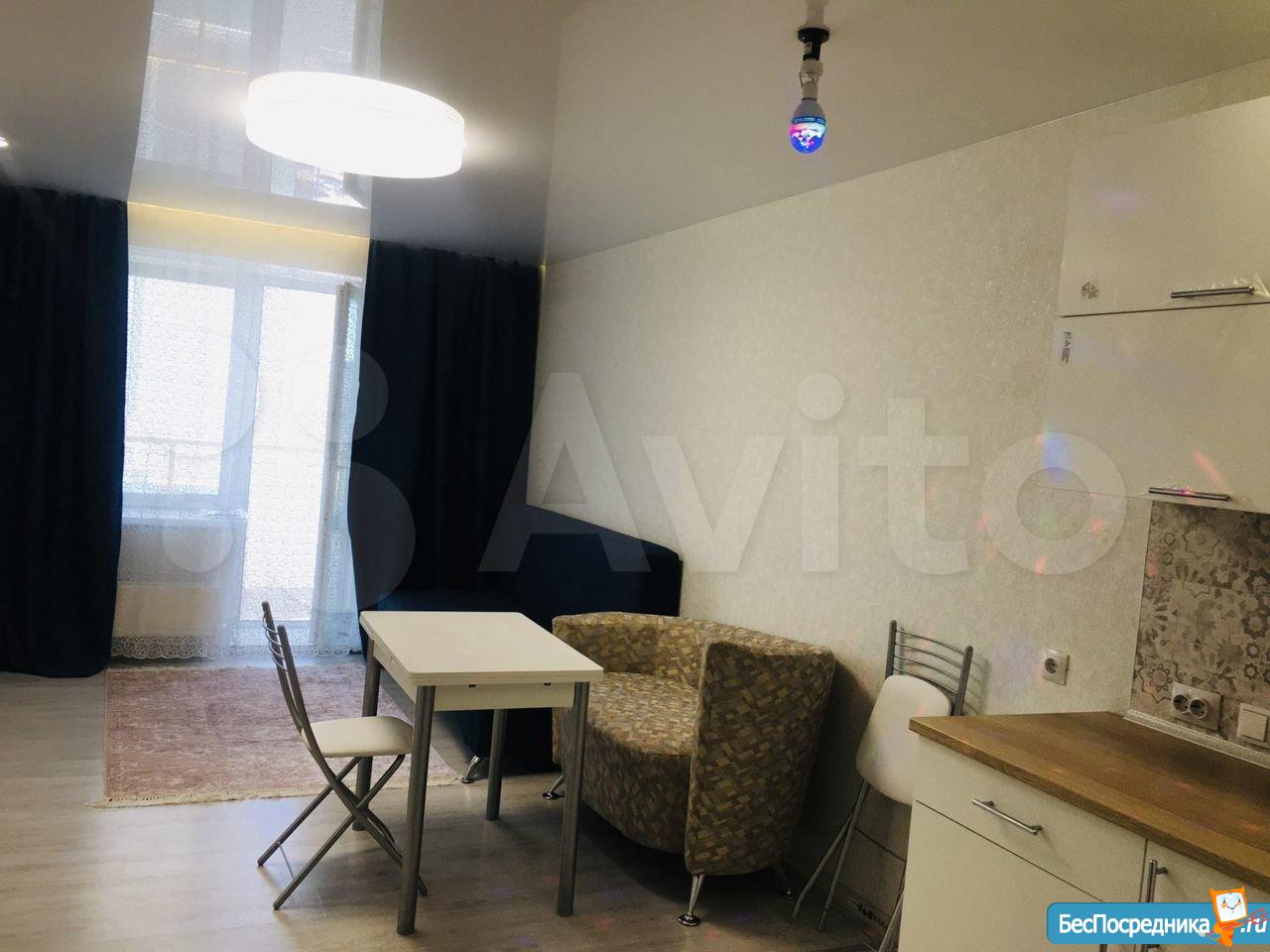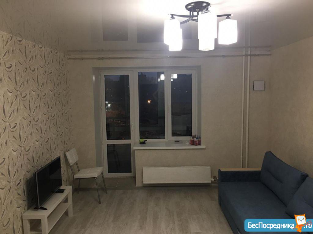 Новая квартира-студия, в новостройке. В квартире сделан качественный ремонт, обстановка и техника - всё новое! Большой удобный двуспальный диван, тумба под ТВ, Телевизор, кухонный гарнитур, электро-плита, чайник, стиральная машина автомат, вместительная прихожая и отдельная обрадованная гардеробная комната, ванная комната. Квартира тихая торцевая, находится на 2 этаже с балконом. Условия проживания: на длительный срок. Помесячная оплата. Электроэнергия и вода оплачивается дополнительно к арендной плате по счетчику. Залог есть.