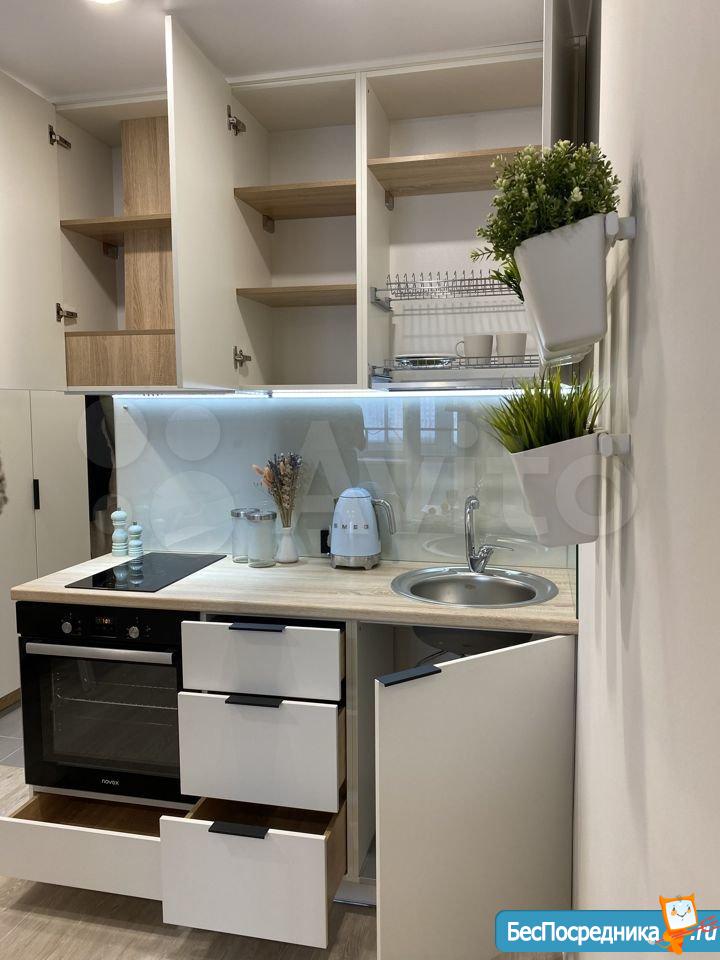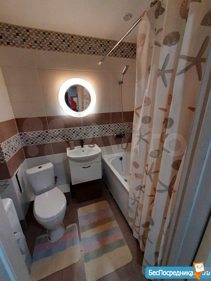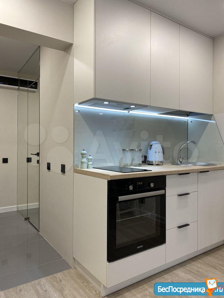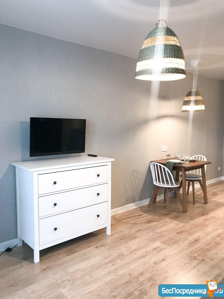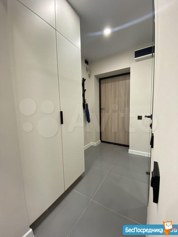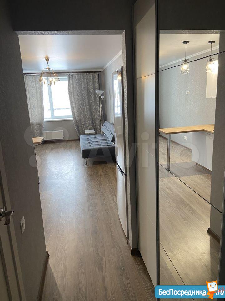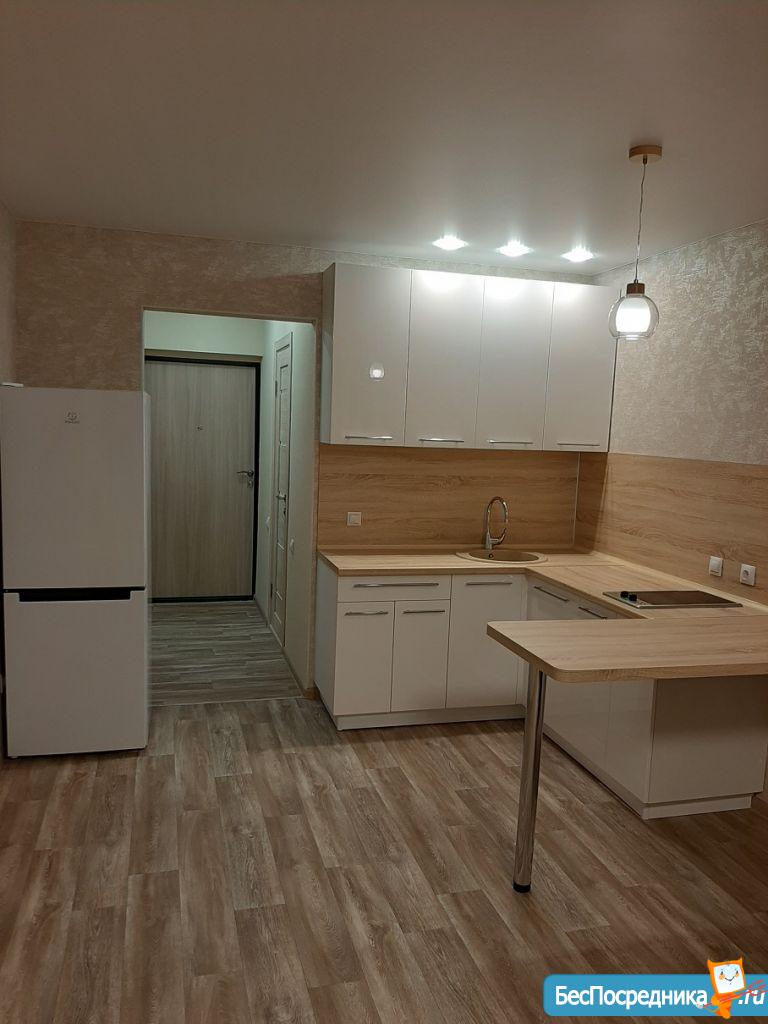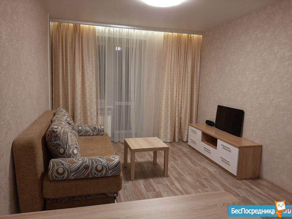 Новая квартира-студия, в новостройке. В квартире сделан качественный ремонт, обстановка и техника - всё новое! Большой удобный двуспальный диван, тумба под ТВ, Телевизор, кухонный гарнитур, электро-плита, чайник, стиральная машина автомат, вместительная прихожая и отдельная обрадованная гардеробная комната, ванная комната. Квартира тихая торцевая, находится на 2 этаже с балконом. Условия проживания: на длительный срок. Помесячная оплата. Электроэнергия и вода оплачивается дополнительно к арендной плате по счетчику. Залог есть.