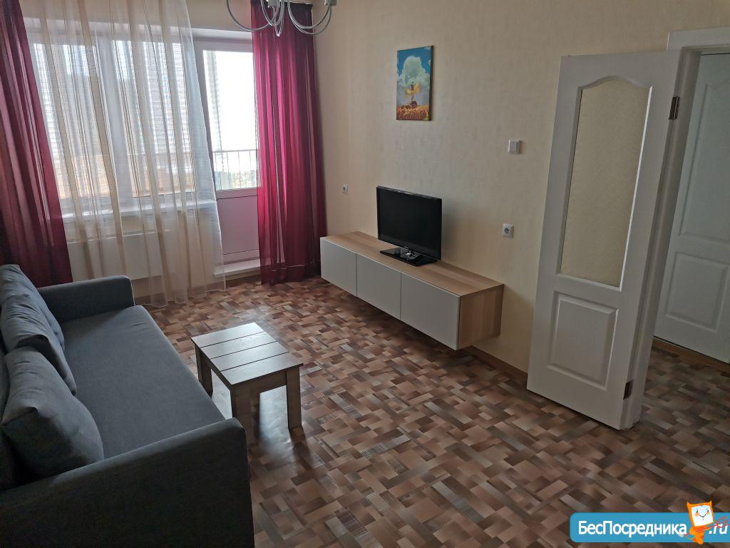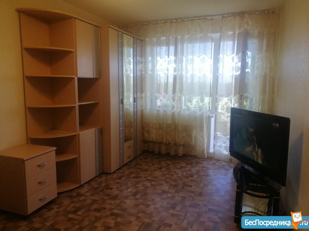 На длительный срок, без животных. Светлая сторона. Большая застекленная лоджия, хороший вид из окон. Удобное расположение: рядом остановка (пешком 3 минуты), большая парковка, детские сады (один муниципальный - во дворе + 2 частных сада), отличные детские площадки, 2 новые школы, бассейн «Звездный», супермаркеты Магнит и Спар. Есть необходимые предметы мебели: 2 дивана, столы, стулья, чайник, кухонный гарнитур, стиральная машина-автомат. В доме есть грузовой лифт, видеонаблюдение. Нарушителям общественного порядка не беспокоить. Собственник.