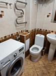 В санузле на стенах и на полу выложена плитка. Новая сантехника.