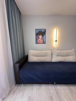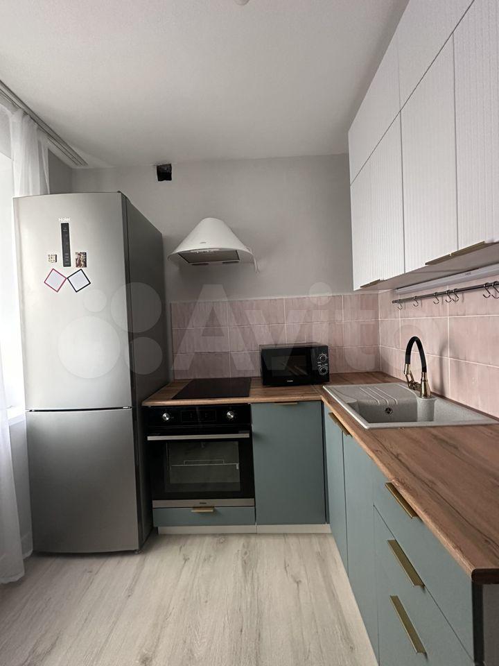 Оборудована мебелью и бытовой техникой: раскладной диван, вместительный шкаф-купе, распашной шкаф в прихожей, телевизор (диагональ 32), стол и 2 стула, холодильник, микроволновая печь, электроплита с духовым шкафом, кухонный гарнитур с вытяжкой, стиральная машинка автомат, бойлер.