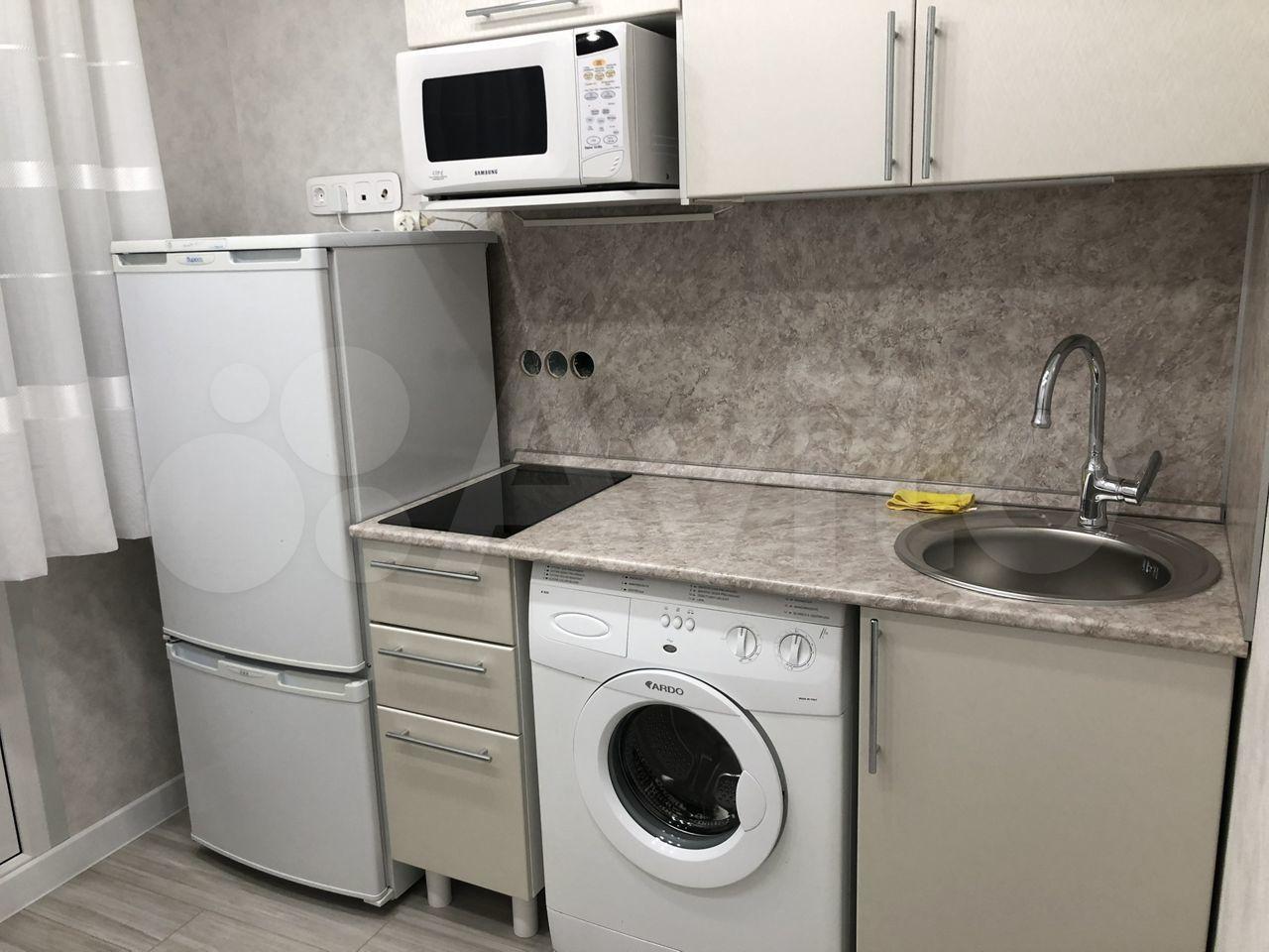 холодильник, плита, микроволновка, стиральная машина.