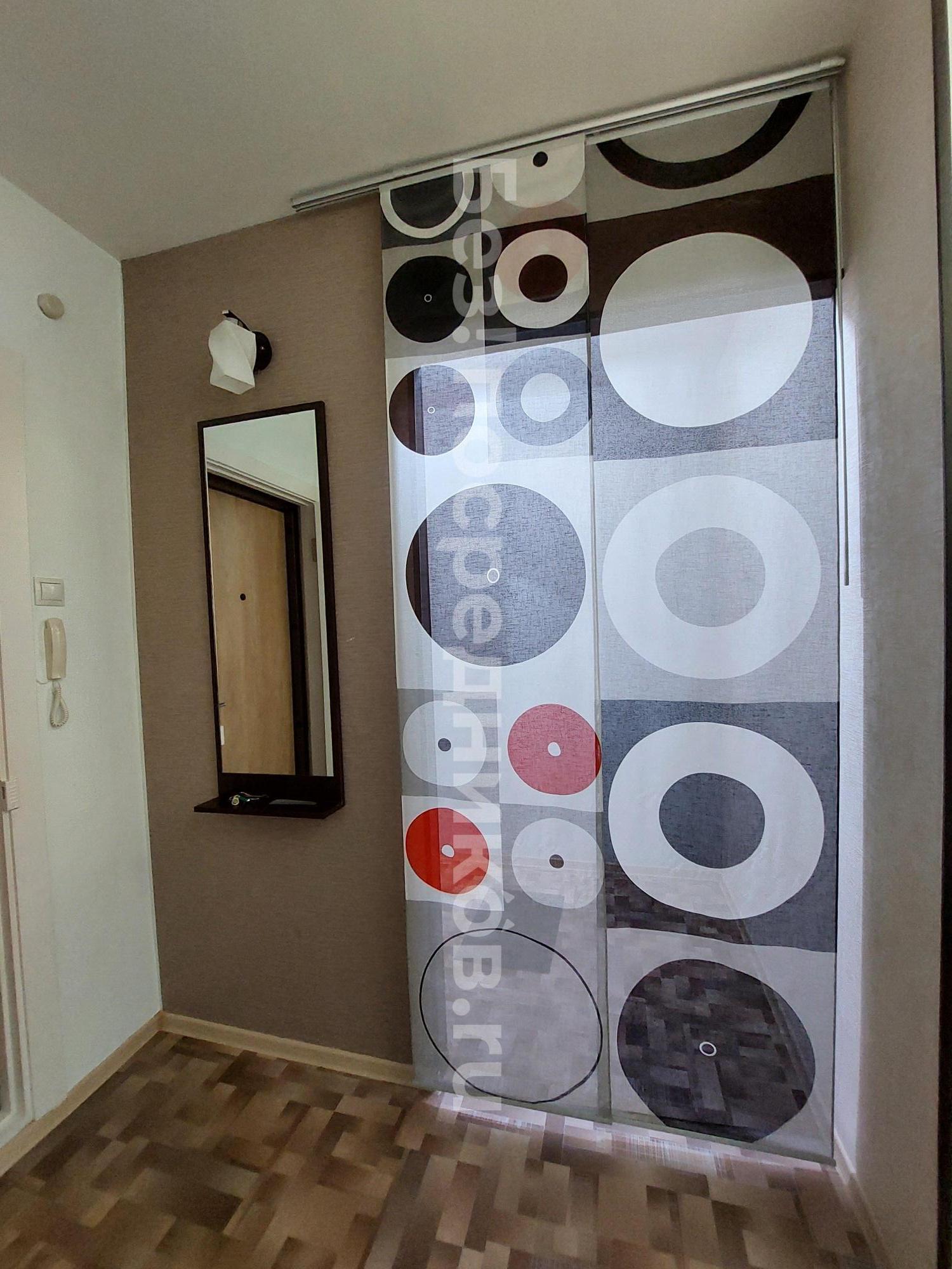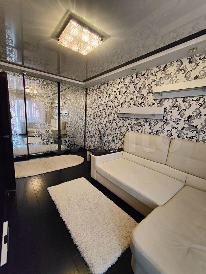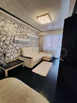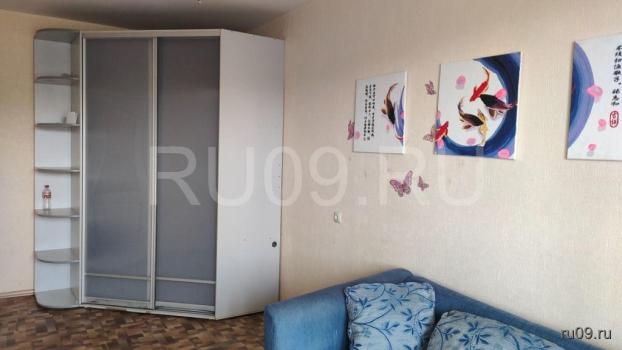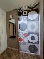 В комнате - большой угловой диван, вместительный шкаф-купе, комод. Имеется декоративная перегородка (на фото видно).