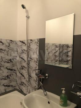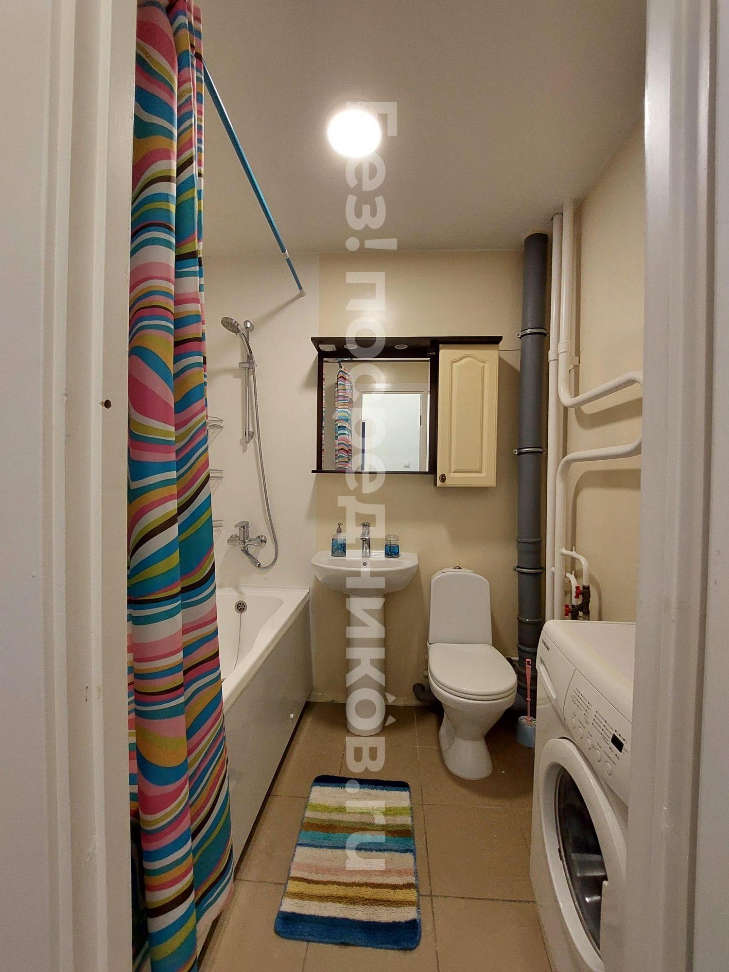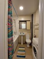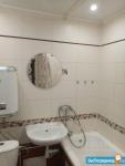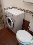 Санузел с кафелем, достойным санфаянсом, имеется бойлер, в случае отключения горячей воды, исправная стиральная машина на 6кг загрузки, все счетчики проверены, всё исправно.