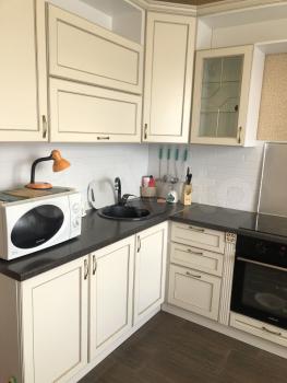 На кухне имеется стол обеденный, два стула, кухонный гарнитур, холодильник, электроплита (ИКЕЯ), новый духовой шкаф, качественная микроволновка.