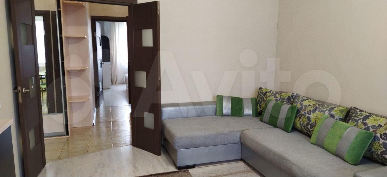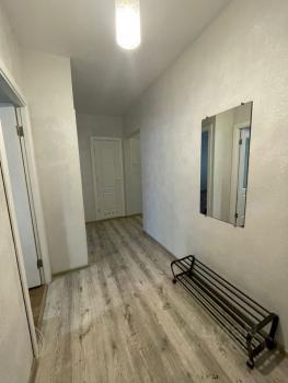 Сдам 2-комнатную квартиру на длительный срок. В квартире есть кухонный гарнитур, стол, холодильник, плита, стиральная машина, диван и отдельная небольшая комната 2 кв.м в качестве гардеробной.