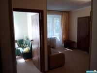 Квартира угловая. Окна выходят во двор и на ул. Матросово, откуда видны ели, движение редкое, тихо, по утрам поют птицы.