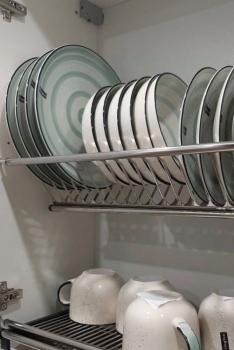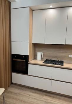 Есть всё необходимое для жизни — чайник, духовой шкаф, варочная панель, вытяжка, холодильник, водонагреватель (50 л), пылесос, утюг. Если чего-то вам не хватает, можем обсудить.