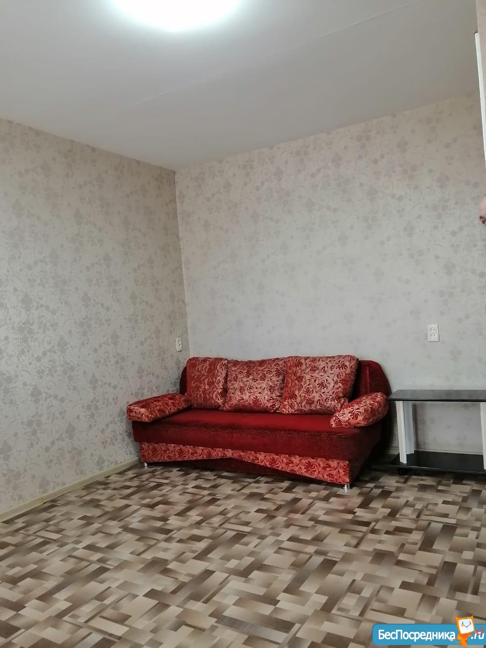 Квартира в хорошем состоянии. Частичная комплектация: кухонный гарнитур, плита, холодильник, шкаф-купе. Остановка рядом. Оплата 11 000 рублей + счетчики. Длительная аренда.