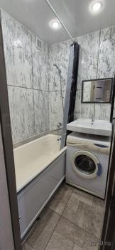 В квартире сделан косметический ремонт. На кухне и в комнате есть необходимая мебель для комфортного проживания. Ванная комната оснащена ванной. Для удобства жильцов предусмотрена бытовая техника: холодильник и стиральная машина.