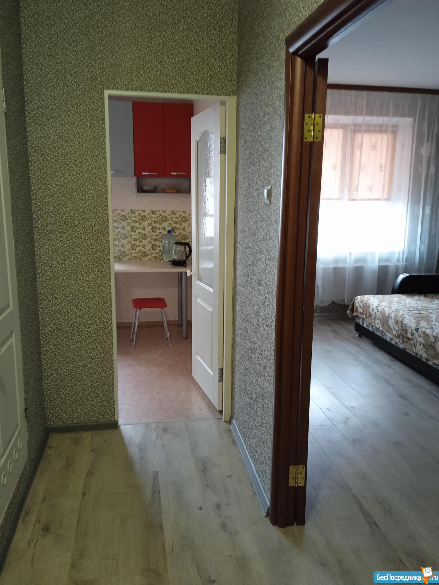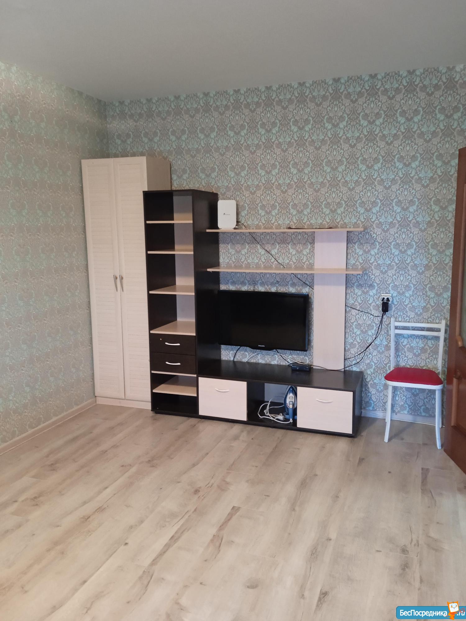 Однокомнатная квартира. В квартире есть всё для проживания. Кухонный гарнитур, холодильник, электроплита, микроволновая печь, стиральная машина, чайник, утюг, диван кровать,небольшая стенка,телевизор, возможность подключения интернета и вайфая.