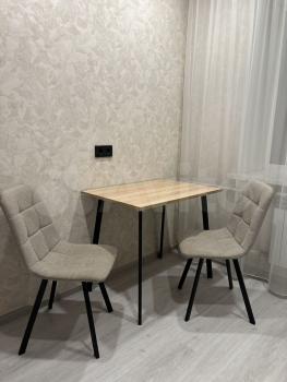 Квартира теплая, уютная и красивая. Много шкафов, столов ,стульев и зеркал для удобной и комфортной жизни.