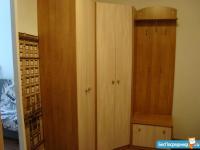 Есть диван, стол-тумба, шкаф, холодильник, двухкомфорочная плитка, чайник.