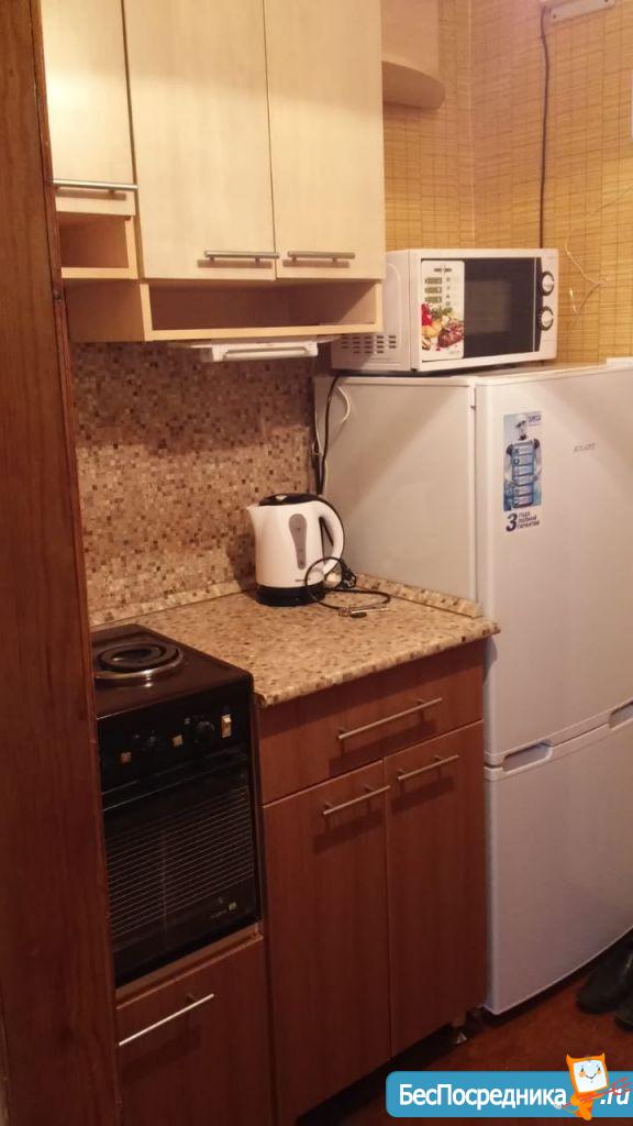 Собственник. Сдается малогабаритная однокомнатная квартира, проходная кухня и комната, совмещённый санузел с душем. Мебель и техника в хорошем состоянии. Угловой шкаф-прихожая, кухонный гарнитур, кухонный уголок, туалетный столик, тумба, диван. Холодильник, микроволновая печь, двух конфорочная электроплита, стиральная машина. 12000 + свет и вода по счетчикам. Строго без домашних животных. Одному человеку или семейной паре.