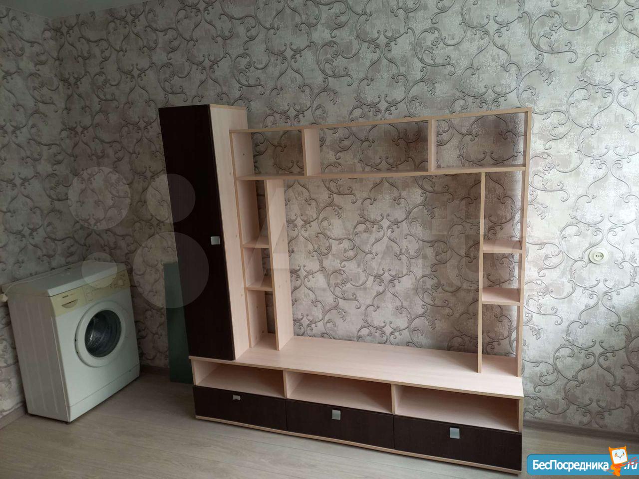 Есть все необходимое для проживания: диван, телевизор, кухонный гарнитур, плита, холодильник, стиральная машина-автомат, шкаф.